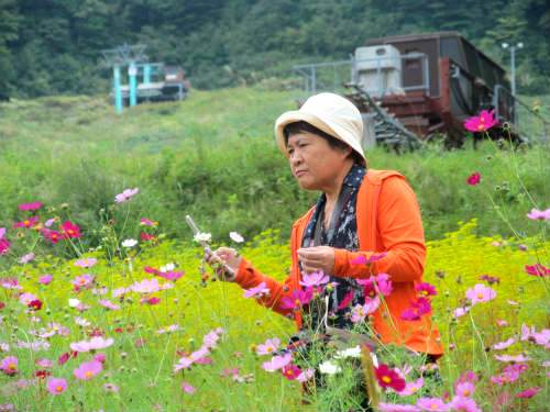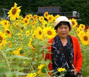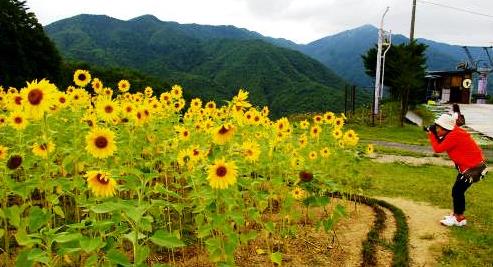 ![]() リフトを登り切ったらひまわり畑が満開のお出迎え |
