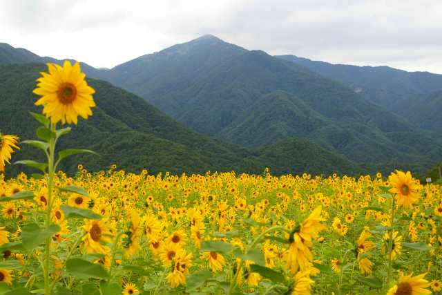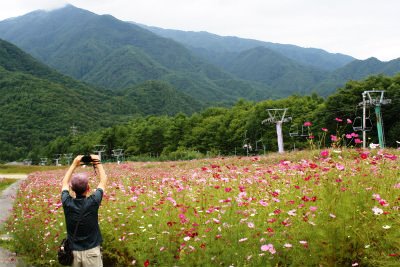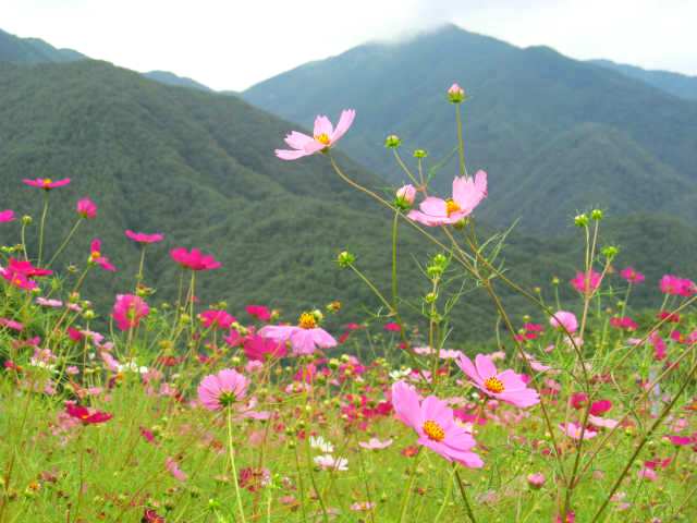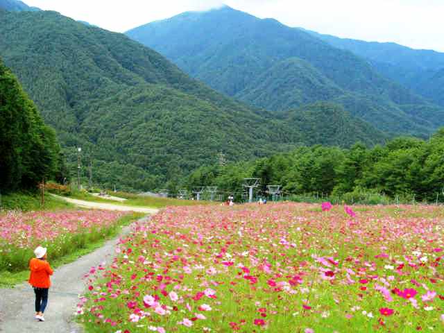 ![]() 長野県の木曽山脈最南端にある山で、標高1,908 mの大川入山をバックに咲き乱れる。 |