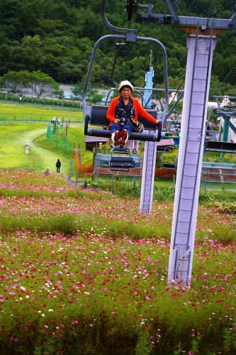 ![]() 100万本のコスモスガーデン『治部坂高原』 入園料\300+リフト代¥500(登りのみ) 割引クーポンには魚釣りがセットされていたのに、平日は休みだとさ? |