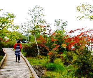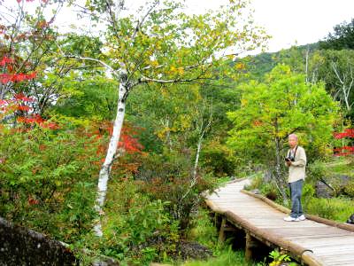 ![]() 白樺湖畔の木道を散策していたらナナカマド?が紅葉していました。 |