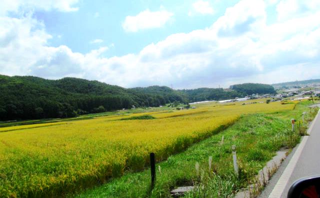 ![]() エコーラインを走っていると、黄金の稲がたわわに実っていました。 |