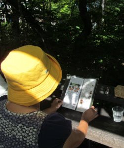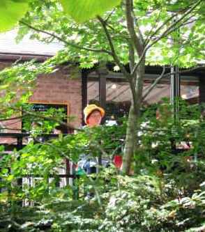 ![]() お腹が空いてきましたね! レストランに入りテラスの席に座る。 |