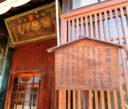 ![]() ![]() 『旧本陣』 古い薬の看板が今も残っている。 当主竹内五左衛門は日本で第1号の薬剤師。 |