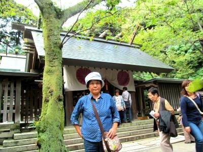 ![]() 正面から参拝*立派名ユーカリの大木 |