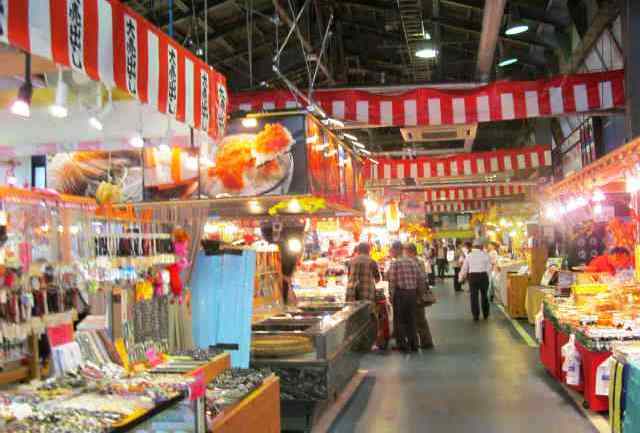 ![]() 『日本海さかな街』 敦賀港直送の魚介が並ぶ水産加工の店。16店舗の飲食店が軒を連ねる巨大海鮮市場です。 場内は昔ながらの雰囲気もそのままに威勢のいい売り子の声が響き、活気に満ち溢れています。 |