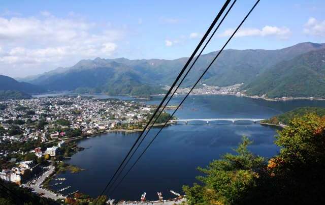 ![]() ロープウェーからみた河口湖大橋 |