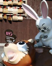 ![]() タヌキの背負った薪に火をつけて大火傷を負わせ、治ったころに河口湖の船遊びに誘い泥舟に乗せて (ウサギは木の船)溺死させ、おばあさんの敵討ちを果たすというお話です。 童話は残酷な話が多いよね! |