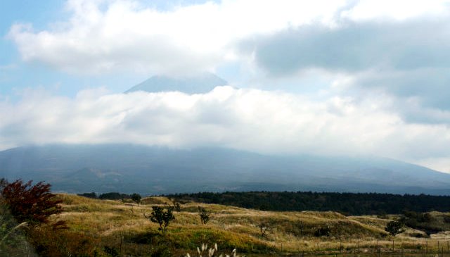 ![]() 朝霧高原のすすきヶ原で少し見えた富士山 |