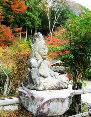 ![]() 紅葉の見ごろも後少しです。 千手の石仏が兵の後を守っているようです! |