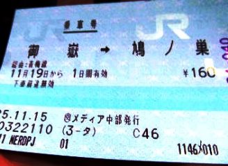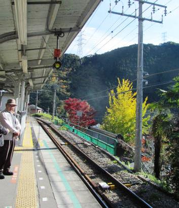 ![]() 御嶽駅から鳩ノ巣までJR青海線/奥多摩紅葉列車に乗り込む |