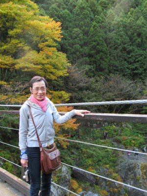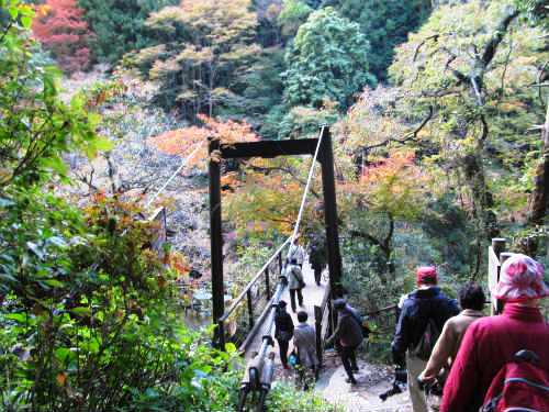 ![]() 2筋の水が流れ落ちる『双流の滝』 吊り橋「鳩ノ巣小橋」を渡ります |