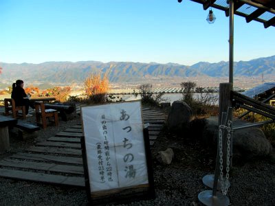 ![]() 富士を望み甲府盆地を見下ろす眺望の変わった温泉で「あっちの湯」と「こっちの湯」があり、今回はあっちの湯に入浴! |