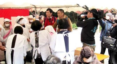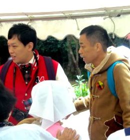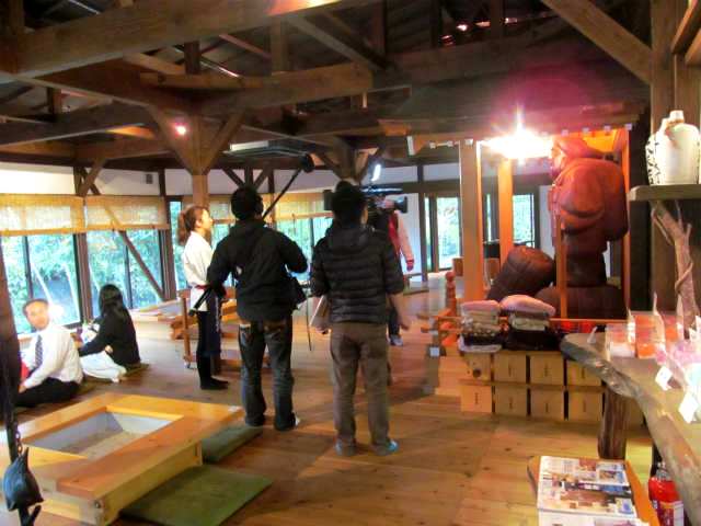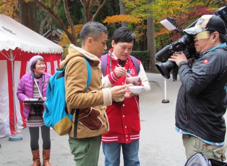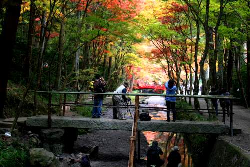 ![]() 本殿に参拝した後に紅葉とテントに誘われ降りていくと・・・何やら撮影? |