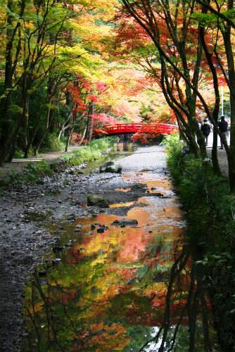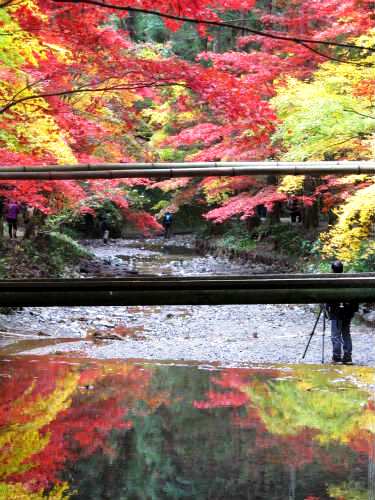 ![]() 川面に映る紅葉に目を奪われる |