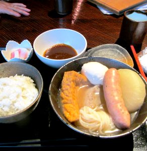 ![]() 「お直りランチ」¥1050は最後の一つでした。仕方ないので「おでんランチ」\1500を注文 森町はこんにゃくが有名なので返って良かったかな? |