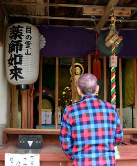 ![]() 老た眼になった目に?祈願!祈願!「お薬師さん宜しくお頼みも申〜す!」 穴あきの5円玉を賽銭箱に。 |