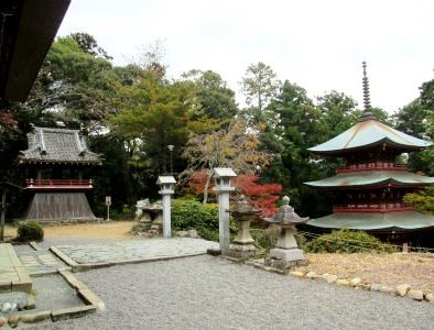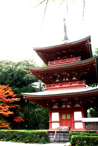 ![]() また長い階段を登ると、源頼朝が眼病全快のお礼に建てたという三重塔が表れた。 内陣には弘法大師作と伝えられる大日如来を安置され、塔の高さは23m。 |