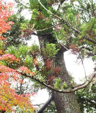 ![]() 天然記念物の『御霊スギ』 弘法大師が挿した松と杉の箸から芽が出て、幹が松、枝葉が杉の木になったという霊木? |