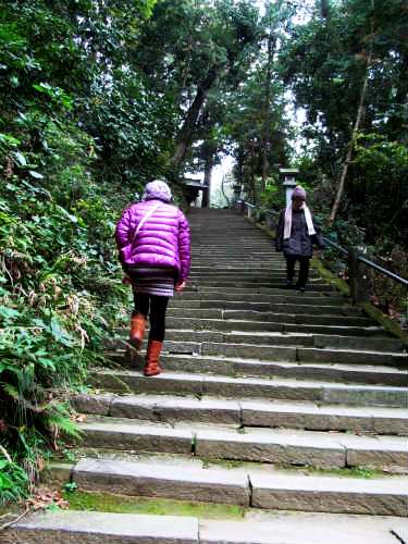 ![]() 237段の階段が待っています。 梵鐘は人間国宝であった故香取正彦氏の手により鋳造された。 |