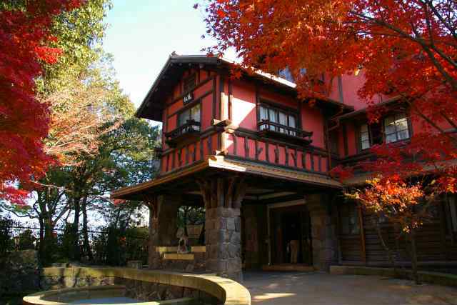 ![]() 伴華楼の紅葉「伴華楼」はバンガローのもじりである? |
