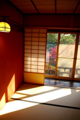 ![]() 三賞亭の障子窓から |