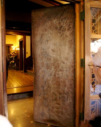 ![]() 住所と「伊藤次郎左衛門居所」の文字が入った玄関の扉(表札代わり?) |