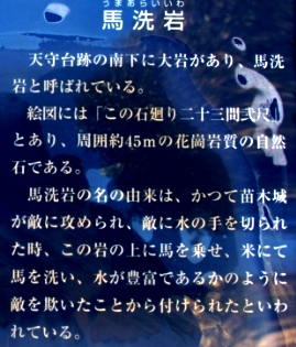 ![]() 赤壁城(苗木城)の伝説を後にした 苗木城に危機が迫ると木曽川から霧が一面に立ち上り、城を隠してしまうという伝説もあり「霞城」とも呼ばれる。 |