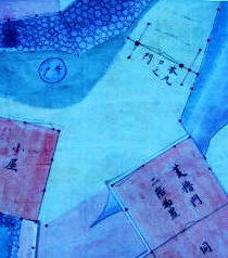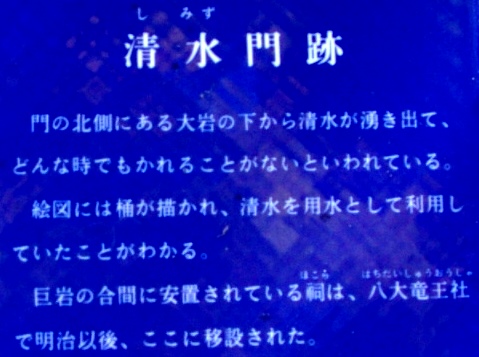 ![]() ![]() ![]() 『綿倉門跡』 年貢として納められた真綿が門の二階に保管されていたことからこの名がある。 |