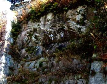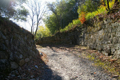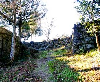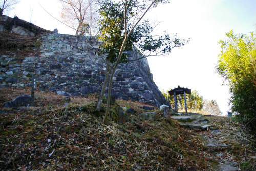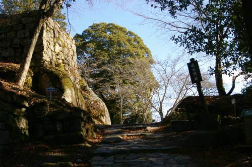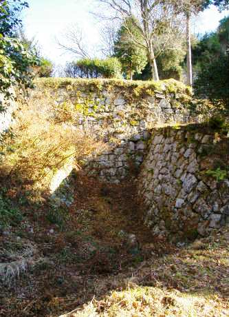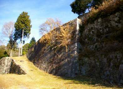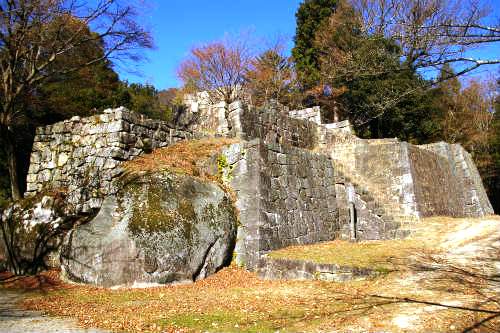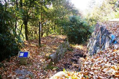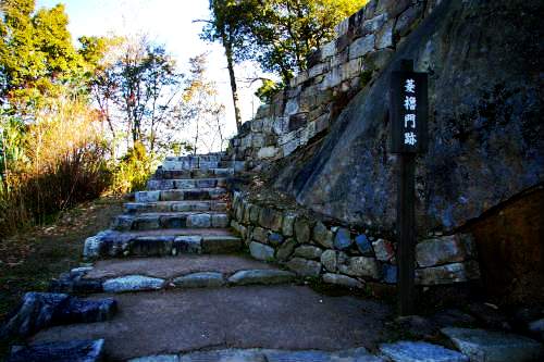 ![]() 石垣の奥が「風呂屋門跡」です。 苗木城は18の門で固められていました。 |