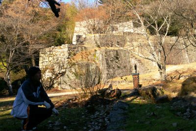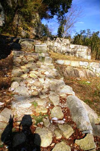 ![]() 何処から運んだのかおびただしい石垣が見られました |