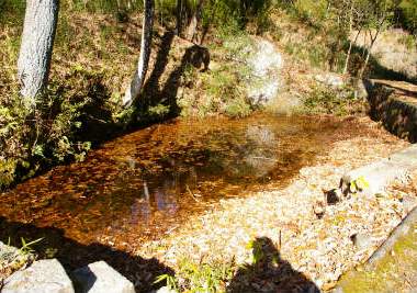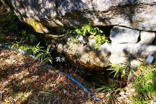 ![]() 巨岩の下から清水が湧き出て、貴重な水の補給源。 |