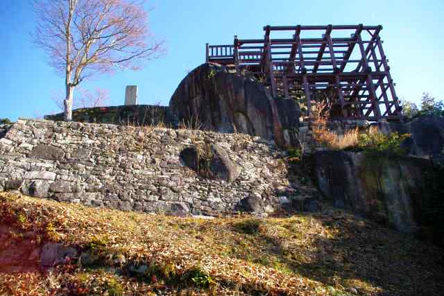 ![]() 大矢倉土台の巨石には見事な切り込みが入った石垣が見られます |
