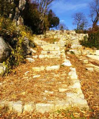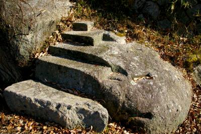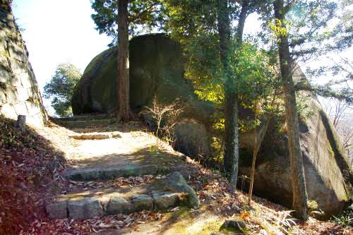 ![]() 巨岩を石垣に組み入れたり、自然石を階段に加工したりと自然に溶け込んでいます。 |