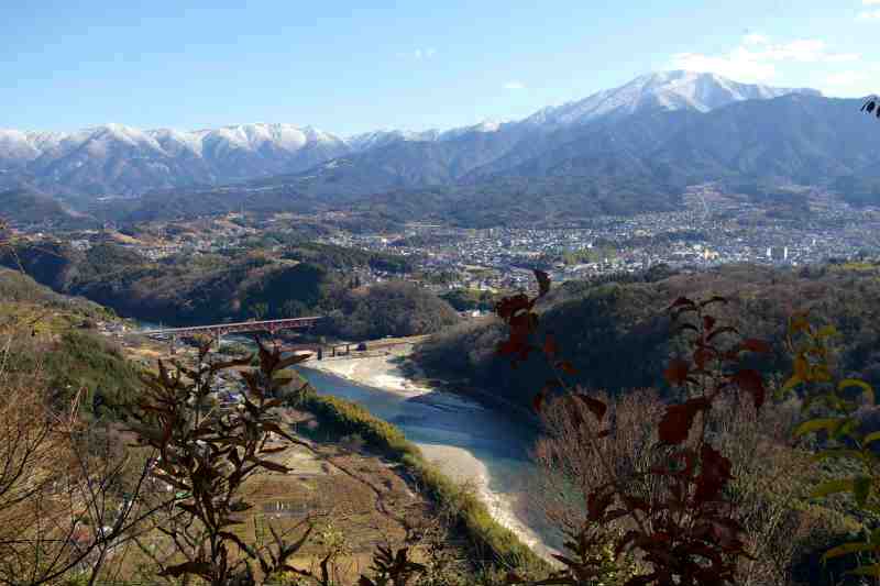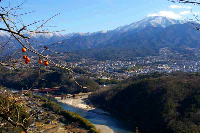![]() 中津川市街、木曽川、白くなった恵那山、木曽山系の山並みが一望でき素晴らしい! |
