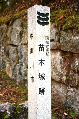 ![]() 苗木城は標高433mの高森山の二つの巨岩の上に建つ山城である |