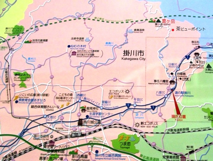 Pm10:00ホテル>掛川城>茶文字の里>粟ヶ岳>森掛川IC>新東名>浜松いなさIC>R257>田口