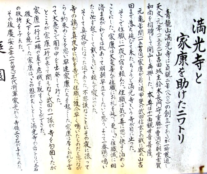 ![]() 『青龍山満光寺』 家康を助けたニワトリ? |