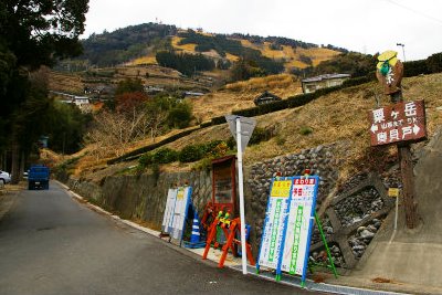 ![]() 『東山いっぷく処』でお茶を買い、すぐ横の登山道を走る。 |