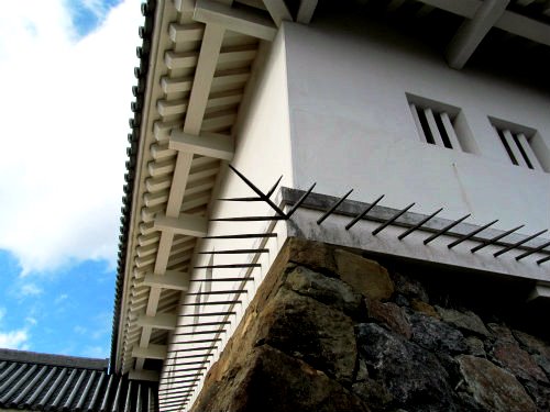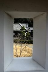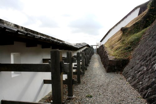 ![]() 長塀があり・・狭間が幾つもありました。 狭間(はざま)とは、主に城郭の天守や櫓の壁面、塀などに開けてある防御用の窓穴の事。 |