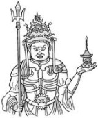 仏法を守護する四天王の一人として北方防備の任を担い、四天王中,