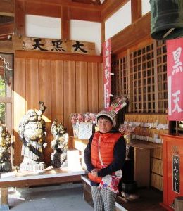大黒さまの頭につけた頭巾は「上を見ない」という謙虚さを。
