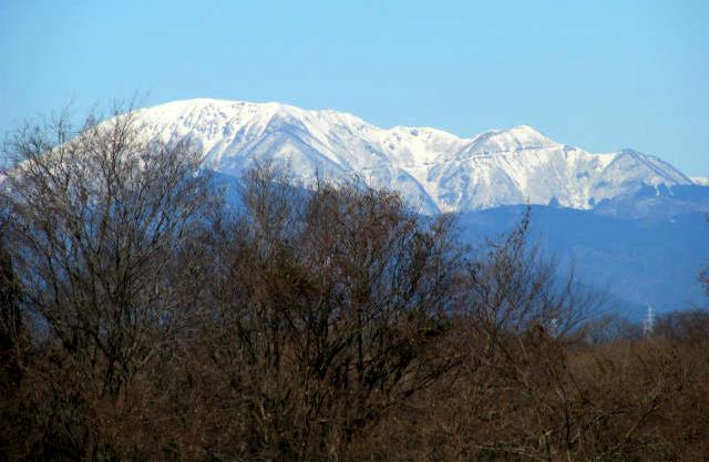 ![]() 「地泉院」西の土手に登り、木曽三川越しに白く化粧した伊吹山がそびえていました |