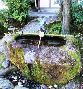 ![]() ![]() ![]() 真新しい竹とひしゃく、苔むした蹲が目に付く! 枯山水庭が造られていました。 |