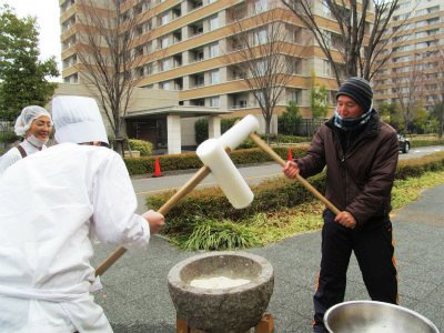 ![]() ![]() セントラルガーデンを歩いていたら、餅つきが・・・参加してあま〜い!ぜんざいを頂く |