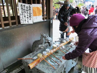 ![]() 「古井の霊水は信仰のお水」ですの張り紙に気を引き締めて! |