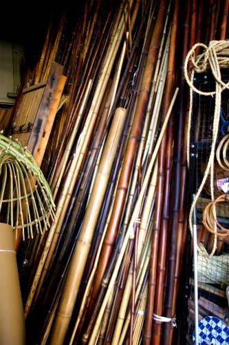 ![]() 焦げ茶にくすんだ竹は貴重な古民家で使われていたススで燻された竹です |