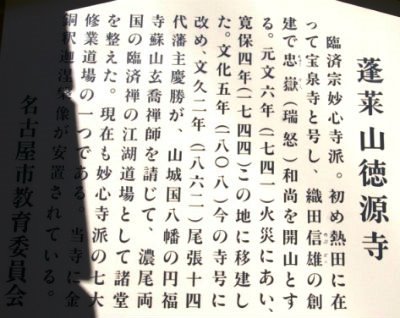 ![]() 『蓬莱山徳源寺』 熱田にあった宝泉寺を移築(昔、熱田を蓬莱山と呼んでいたはずだが?うなぎ屋の蓬莱軒がある) |