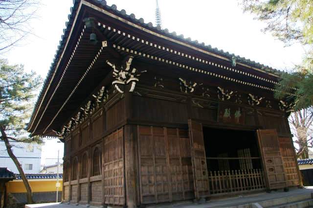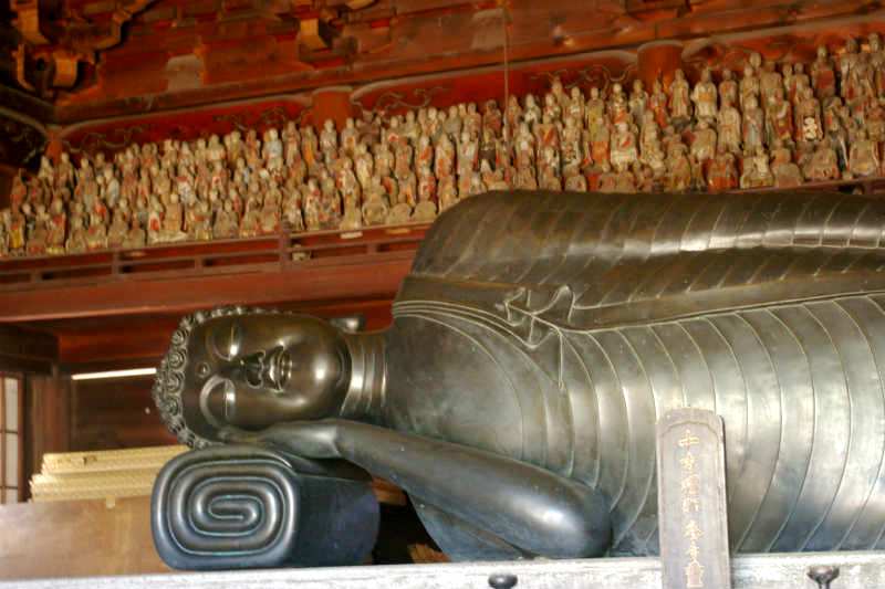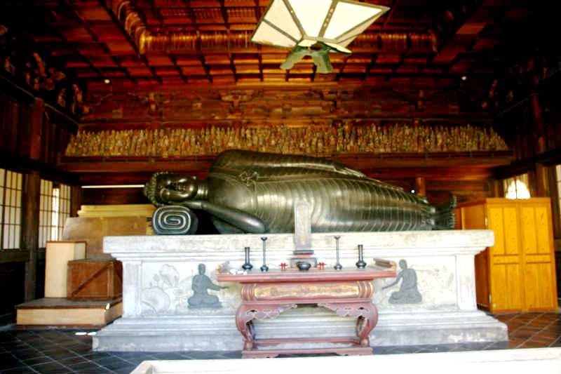 ![]() 銅製の涅槃像を安置し、後部に五百羅漢を祀った、日本では珍しい仏殿である |