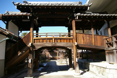 ![]() 『中門』から外は、徳源寺の境内ではありませんでした。 その頃から残っているのは、釈迦堂前の楠の木と、禅堂の前にある桑の木です。 塀の外は桑畑でした。今は勅使門があり、鐘楼の位置も現在と異なります。 |