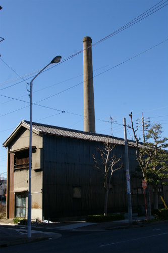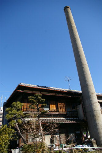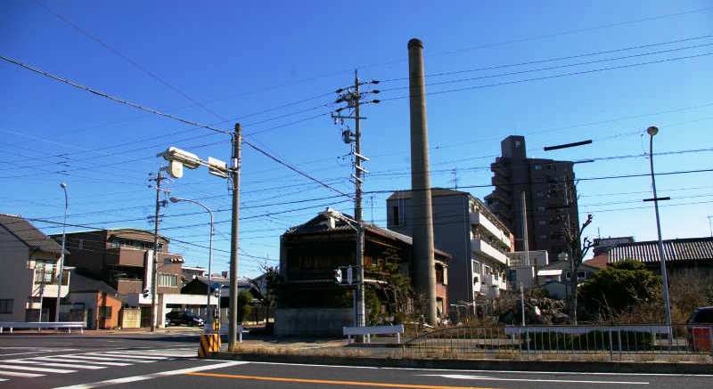 ![]() 建中寺の東、黒門町交差点に煙突がそびえる。 |